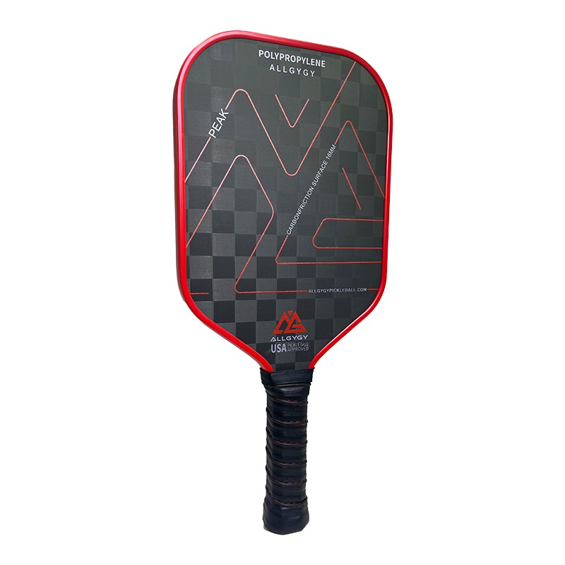 ALLGYGY PEAK A1 18K कार्बन फायबर पिकलबॉल पॅडल फायदे: व्यावसायिक पिकलबॉल पॅडलसाठी कार्बन फायबर ग्रिट ही सर्वोत्तम सामग्री निवड आहे. ते केवळ विलक्षण स्पिनच निर्माण करत नाही, तर ते शक्ती आणि नियंत्रणाच्या परिपूर्ण संतुलनासाठी एक मोठा गोड स्पॉट देखील तयार करते.